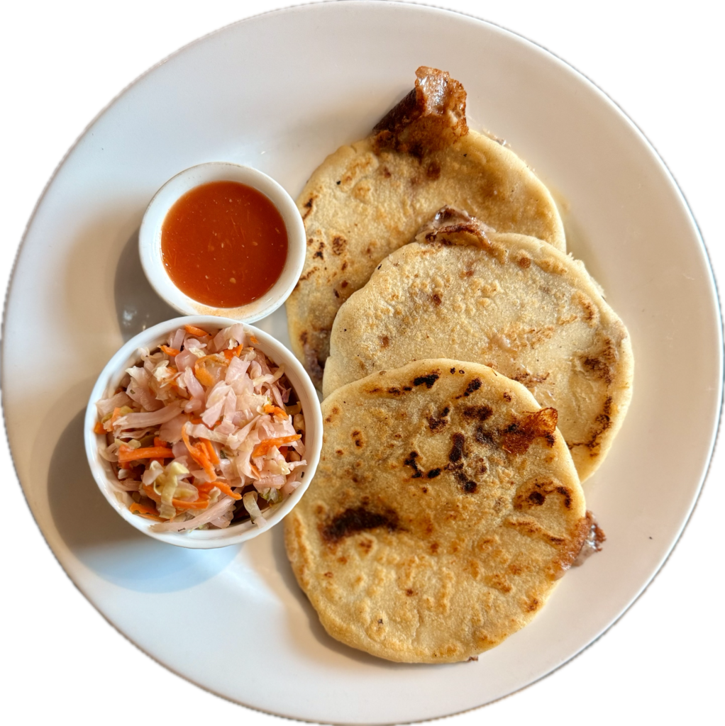 Corn is essential—used in tortillas, tamales, and especially pupusas, the national dish.